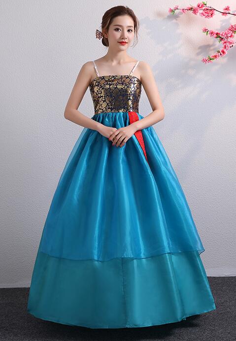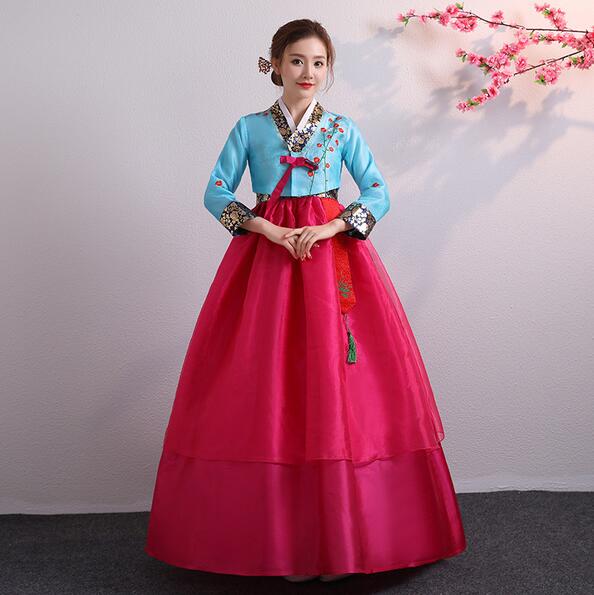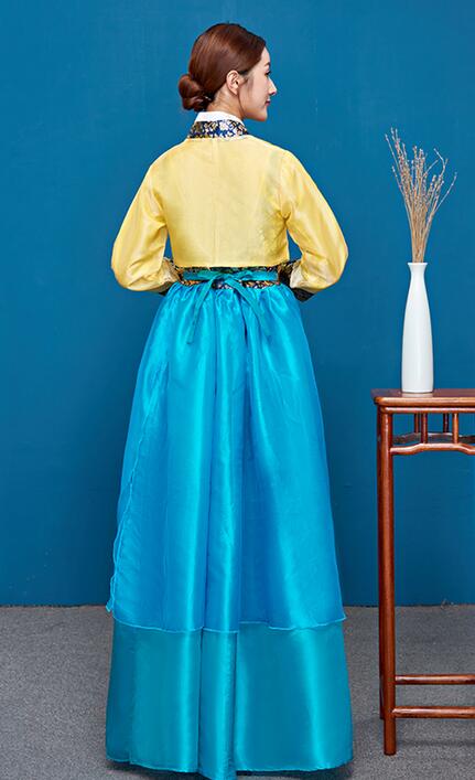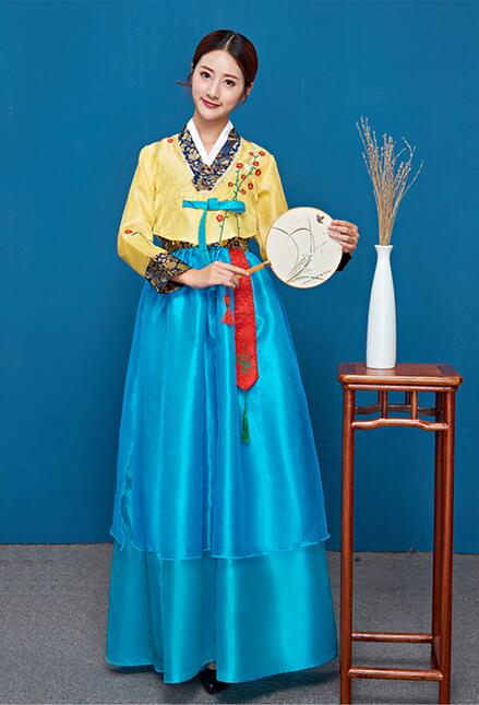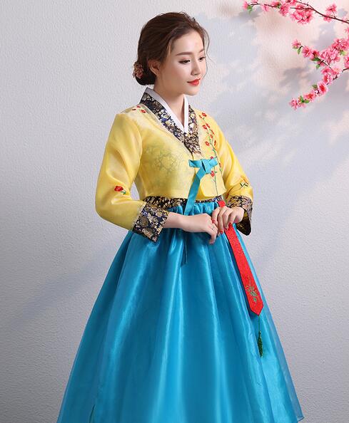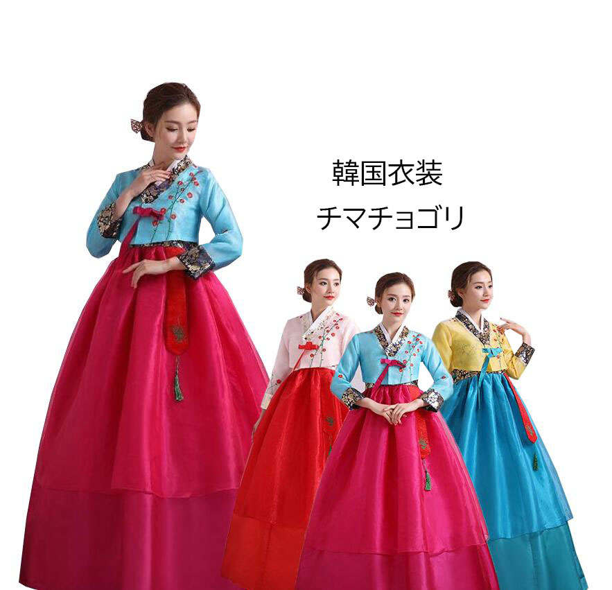 チマチョゴリ刺しゅう豪華大人用チマチョ ワンピース 続々登場 ドレスだけ ドレス+パニエ 青+ローズ 黄色+青 白+緑 ピンク+レッド