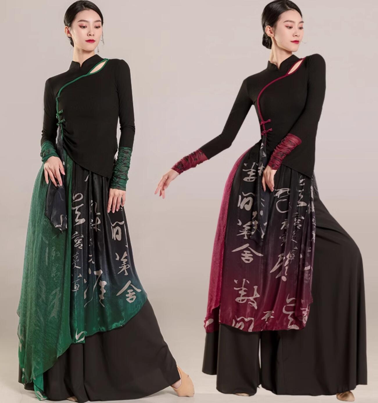 中華ダンス衣装 チャイナ古典ダンス衣装 体操 ダンス 社交ダンス ウェア 通販 S M L XL 2XL 3XL 120cm 130cm 140cm 150cm ガウチョパンツ 上下セット