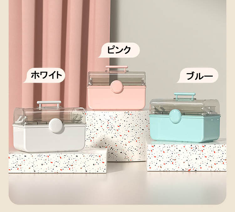 救急箱 おしゃれ 薬箱 大容量 仕切り ピンク ホワイト ブルー L XL