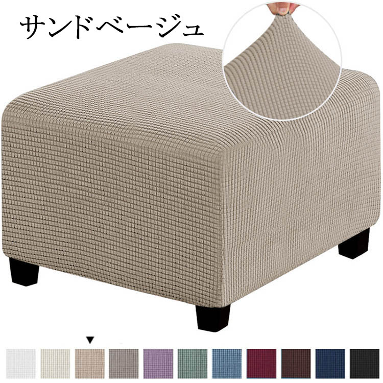 オットマンカバー 足置きカバー 正方形 ホワイト ブラック オフホワイト ライトグレー ダークグレー サンドベージュ サンドカーキ ワインレッド ネイビー グリーン アップルグリーン ライトブラウン ダークブラウン パープル ブルー S M L
