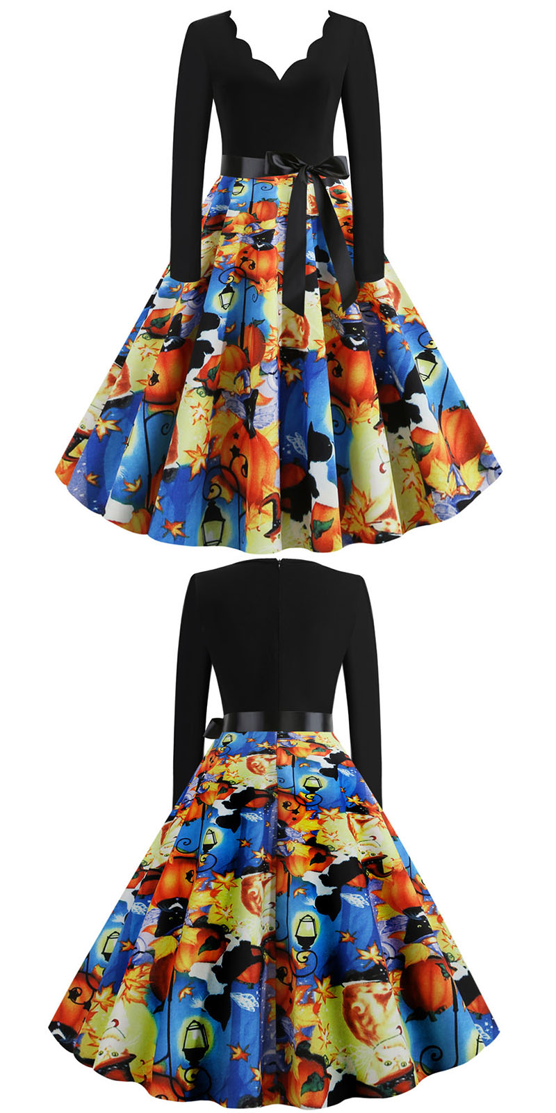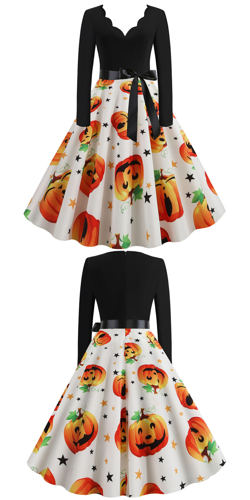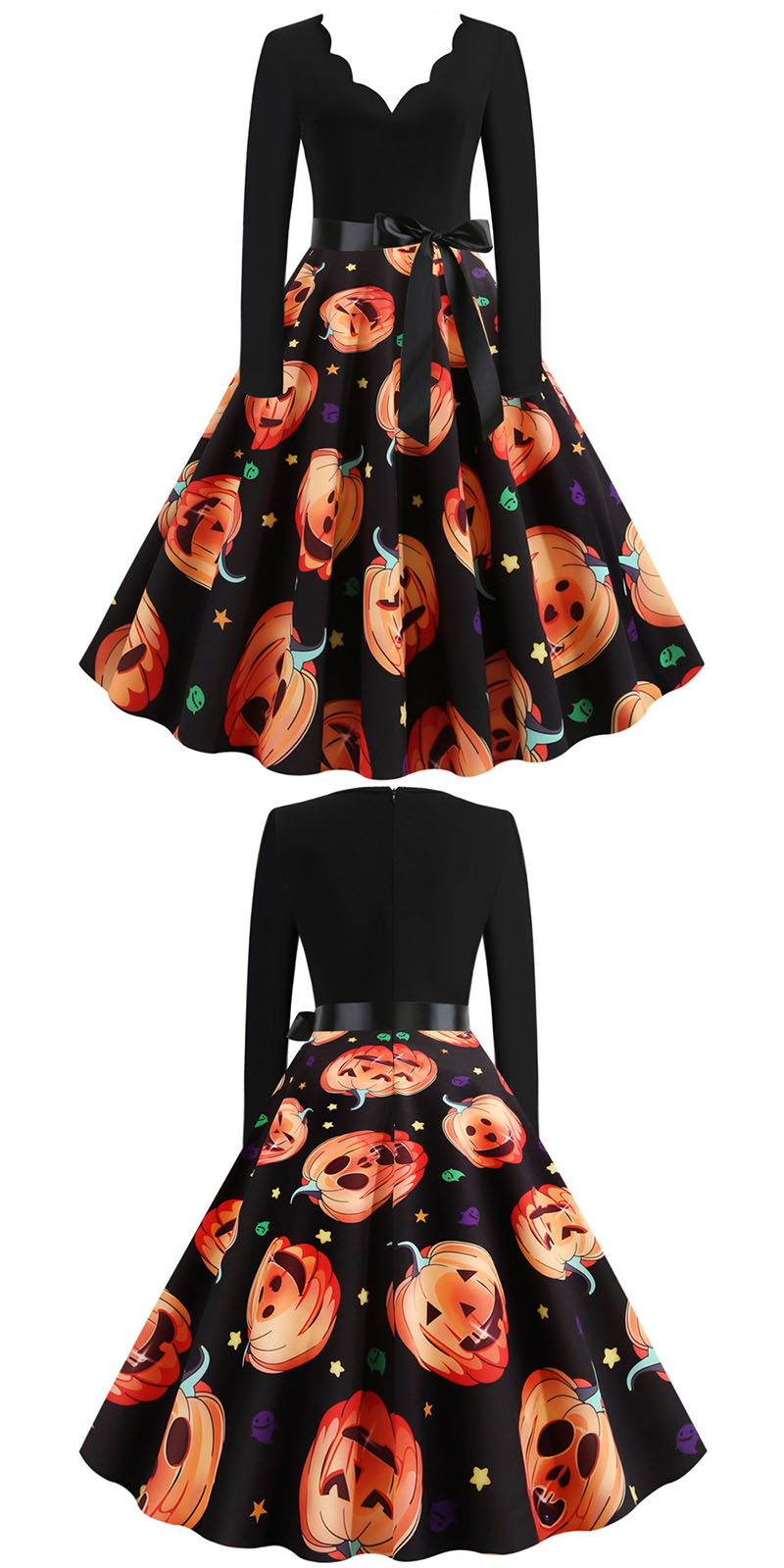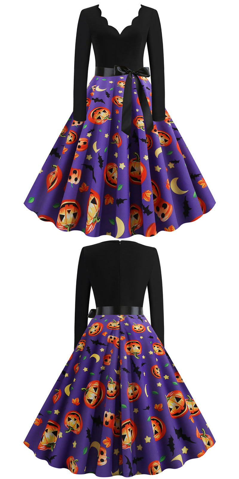 ハロウィン 衣装 レディース ドレス 長袖 ハロウイン仮装 コスチューム コスプレ 大人 かわいい かぼちゃ コウモリ 幽霊 鮮やか 大きいサイズ cosplay HALLOWEEN パーティ 大人用