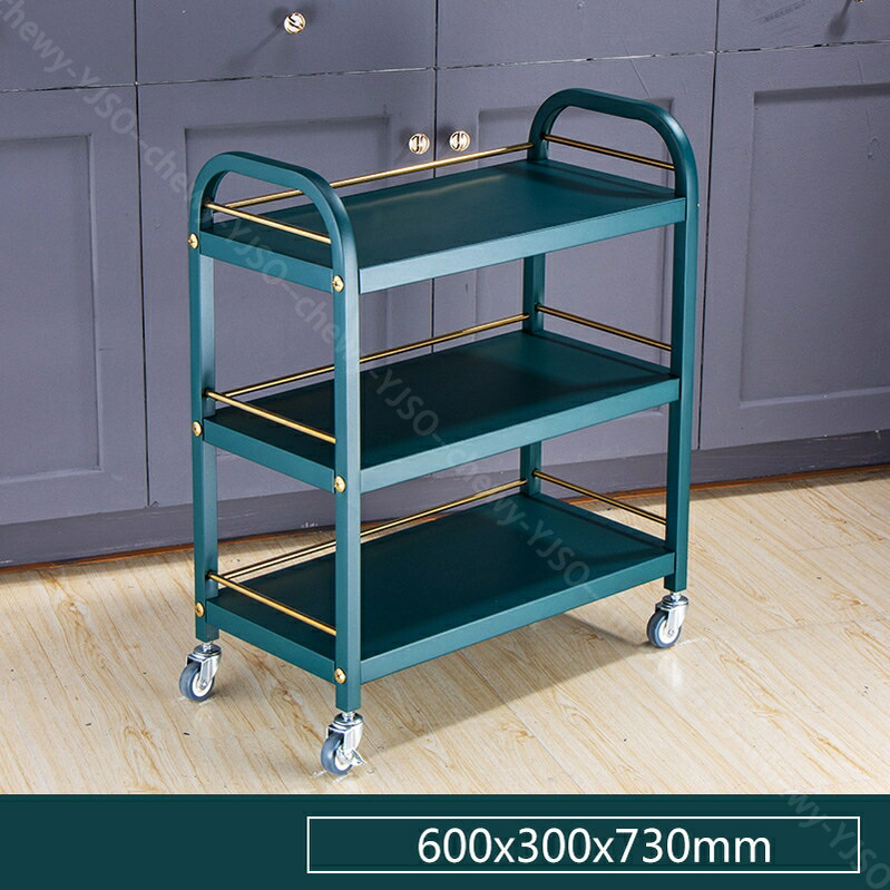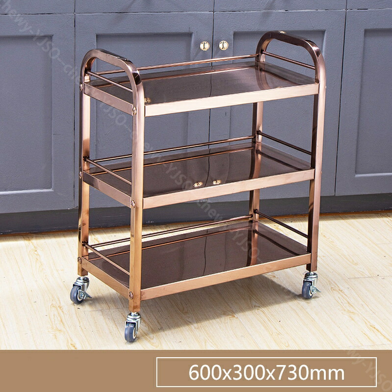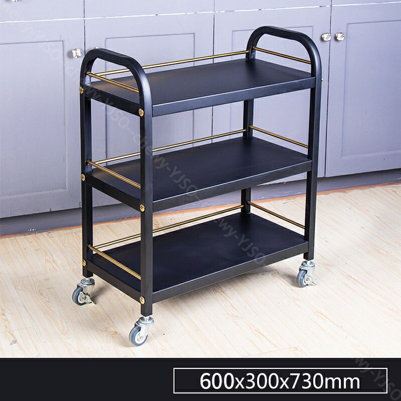 キッチンワゴン キャスターはプラスチック製で、床を傷つけることなく静かに押すことができる。