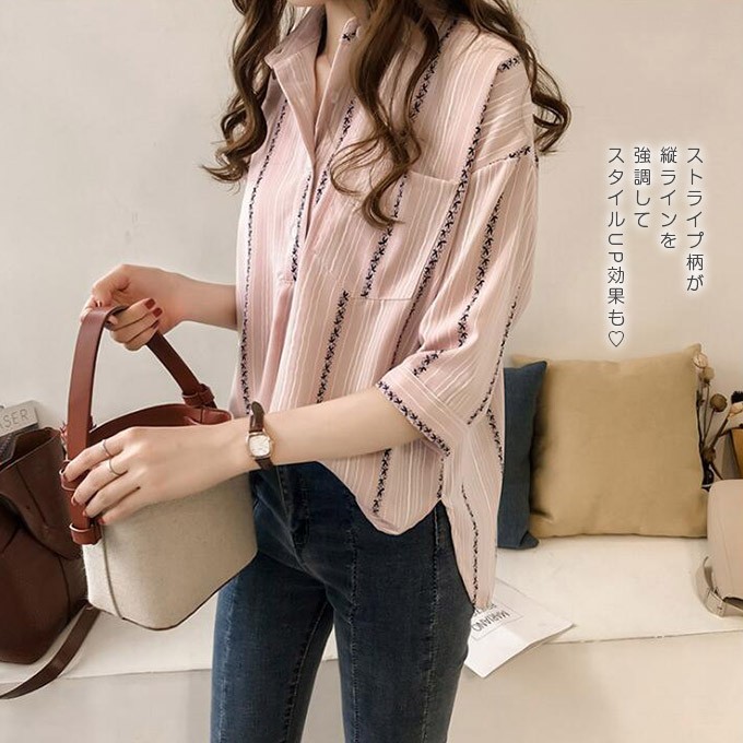 ブラウス シャツ トップス ストライブ レディースファッション 続々登場 ピンク ホワイト M L XL 2XL 3XL 4XL