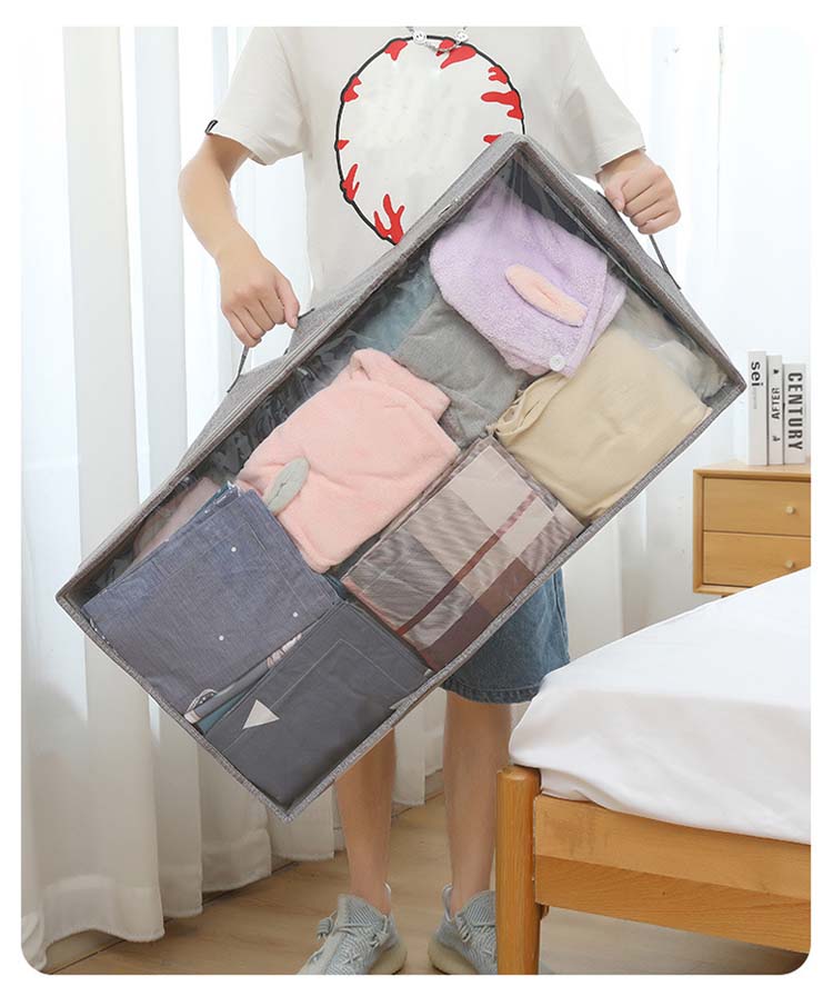 最強配送 収納袋 幅83×奥行43×高さ15cm 空間の匠 ベッド下 衣類収納 透明窓付き 布団収納袋 シングル 掛け布団用 靴 本 小物 衣類ケース 洋服収納 衣替え すきま収納 クローゼット収納