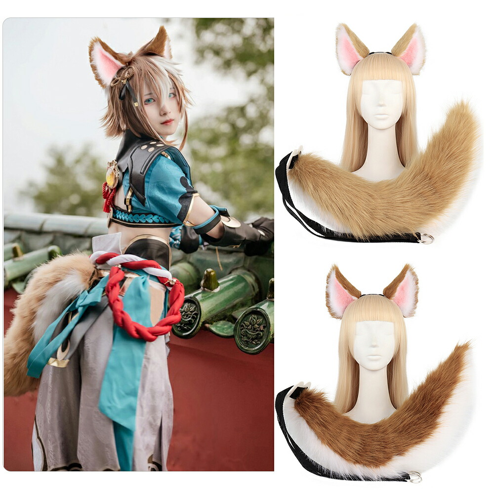 しっぽ 狐耳 セット 尻尾 コスプレ道 コスプレ 変装 仮装 キャップ ヘッドアクセサリー 豊富 ベージュ ブラウン