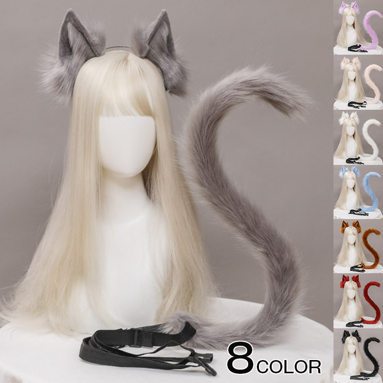 獣耳 カチューシャ 猫 ネコ しっぽ ホビー 豊富な品揃え ピンク 白 パープル ライトブルー キャメル ワイン グレー 黒