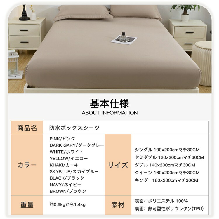 ボックスシーツ シングル 防水 ダブル 寝具 寝具カバー シーツ ボックスシーツ 超目玉商品 ピンク ダークグレー ホワイト イエロー カーキ スカイブルー ブラック ネイビー ブラウン シングル(100×200cmマチ30CM) セミダブル(120×200cmマチ30CM) ダブル(140×200cmマチ30CM) クイーン(160×200cmマチ30CM) キング(180×200cmマチ30CM)