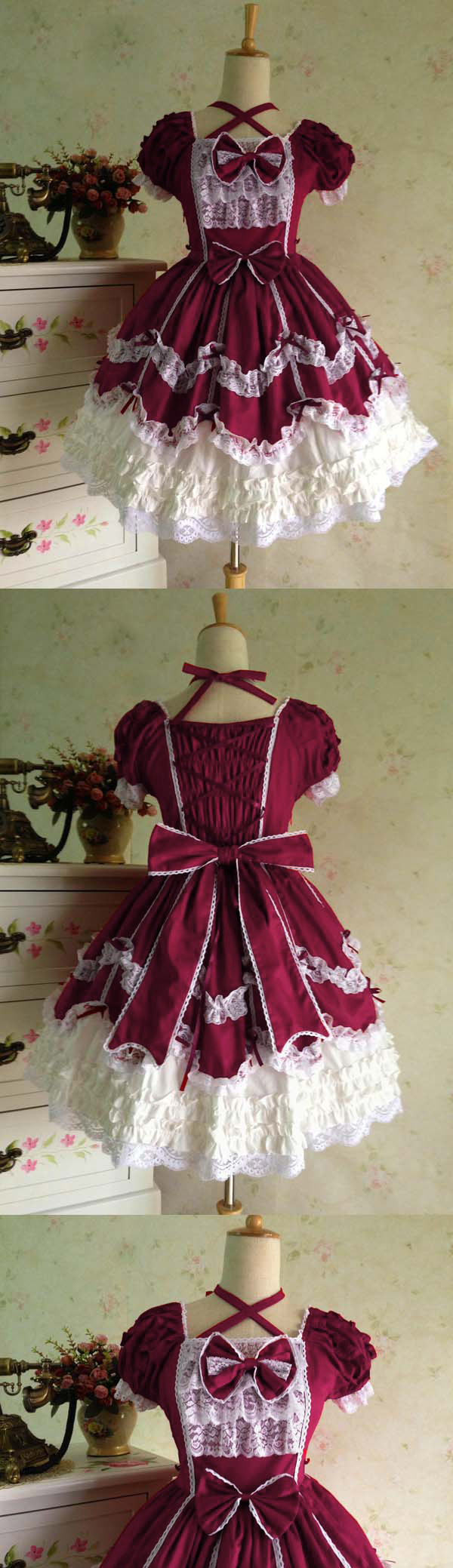 パニエをプレゼント♪ ゴスロリ ワンピ コスプレ 変装 仮装 ワンピース 人気 S M L XL サイズ指定 黒×白 ワインレッド×白 水色×白 ワインレッド×黒 ピンク×白 黒 白