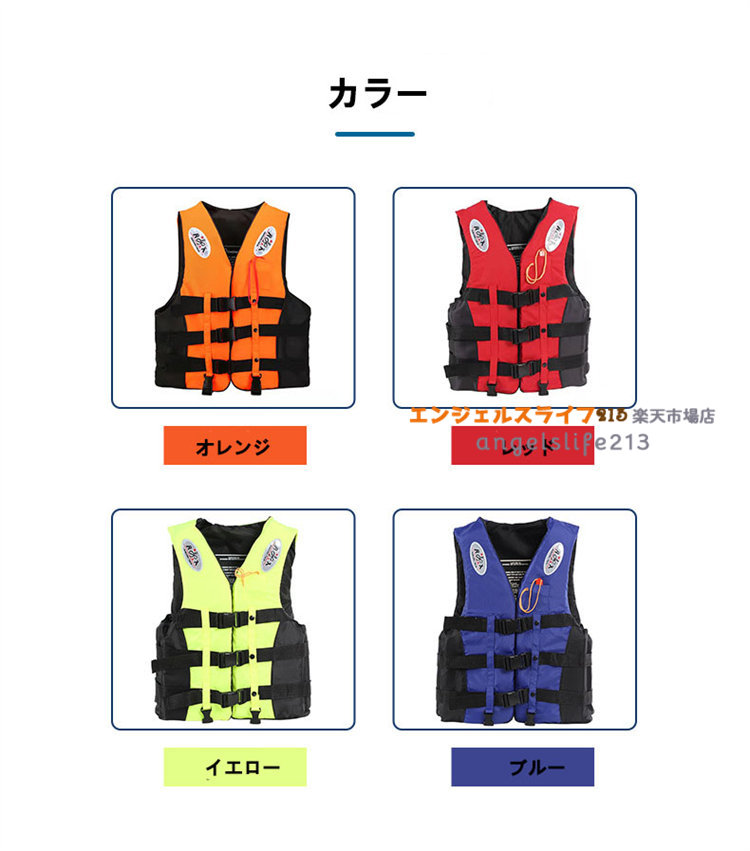 ライフジャケット ベスト型 笛付き シ スポーツ アウトドア 豊富な品揃え オレンジ レッド イエロー ブルー S M L XL XXL XXXL