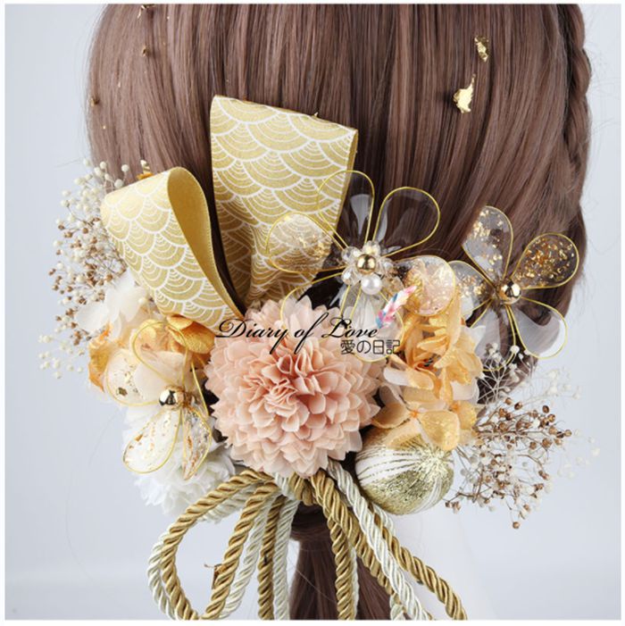 成人式 髪飾り 振袖 和装 ダリア 結 和服 和装小物 髪飾り 通販 ゴールド レッド