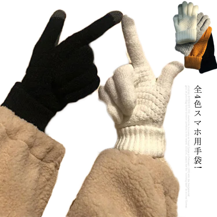 レディース ニット タッチパネル スマ 手袋 アームウォーマー レディース手袋 通販 グレー ブラック ホワイト イエロー