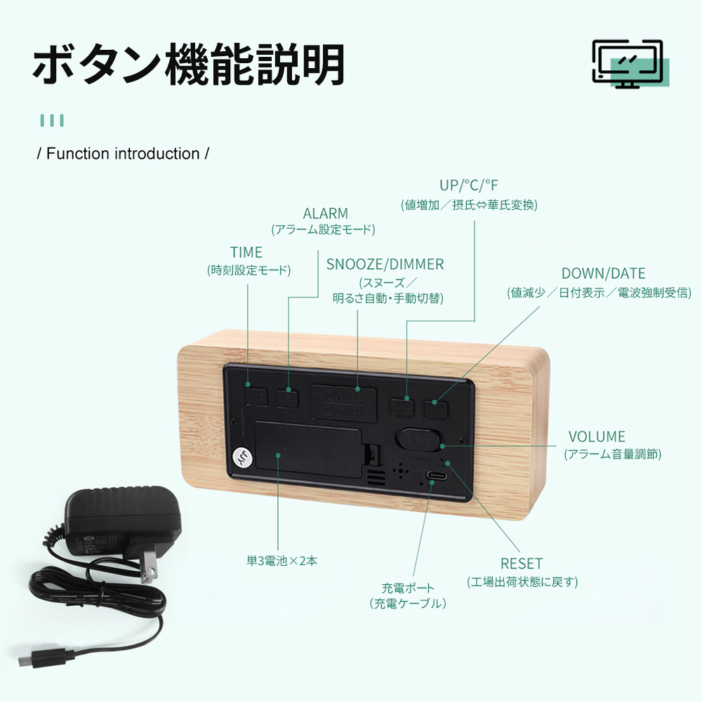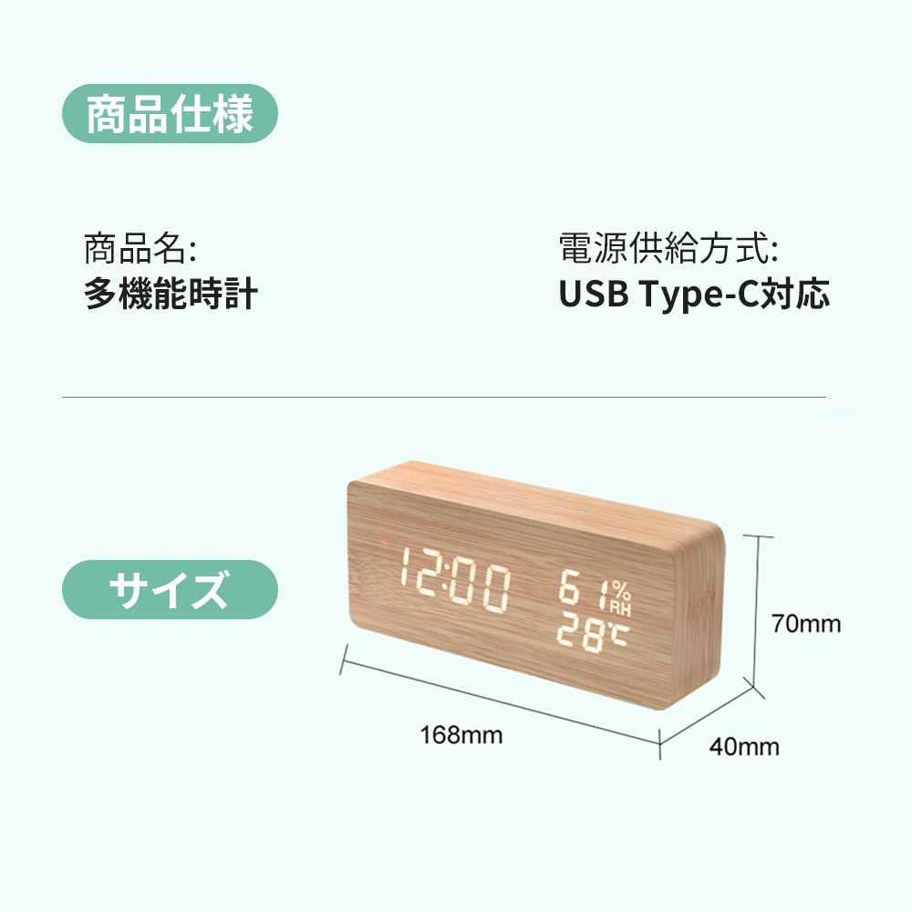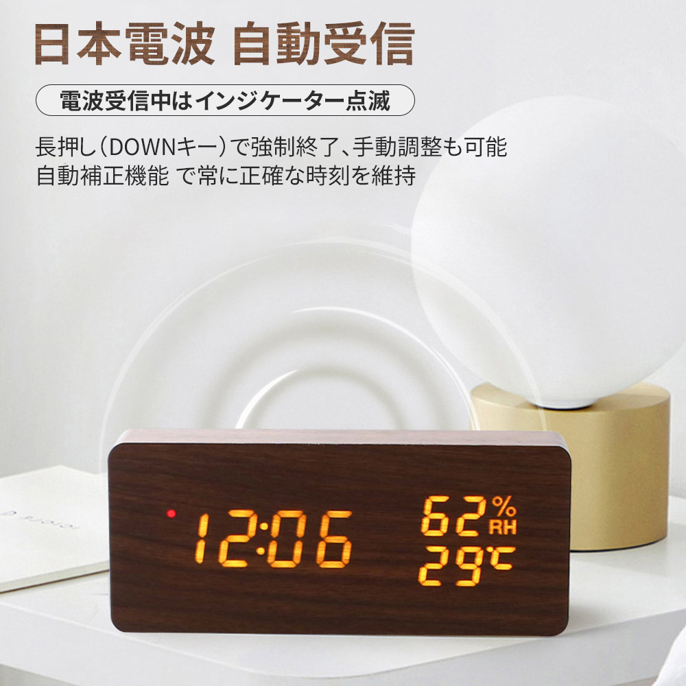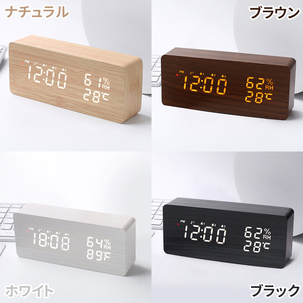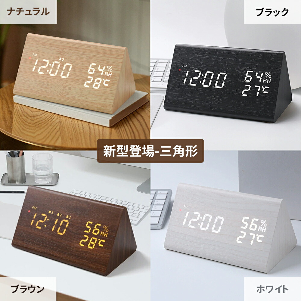置時計 目覚まし時計 デジタル時計 木 ホワイト ナチュラル ブラウン ブラック 三角-ホワイト 三角-ナチュラル 三角-ブラウン 三角-ブラック