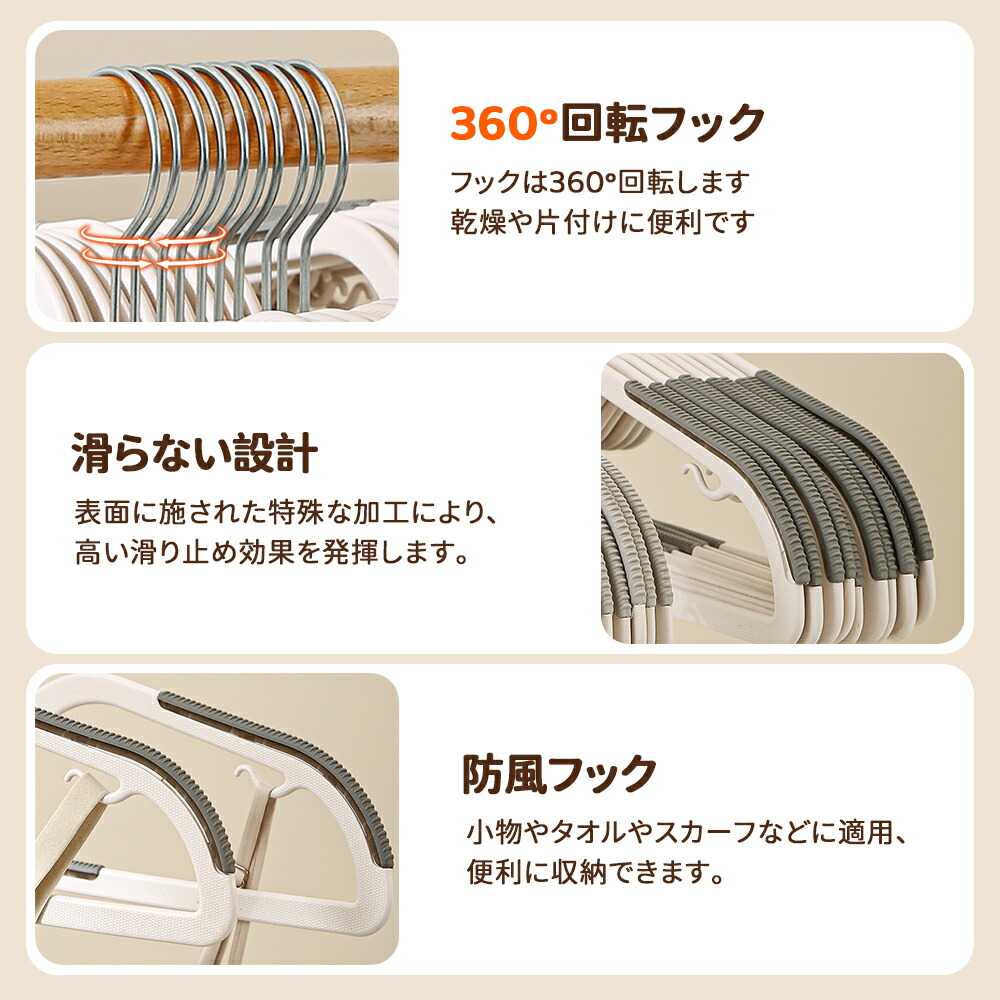ハンガー 短い 多機能ハンガー 超薄型 360°回転フック 凹む 衣類用 薄く滑り止めハンガー ハンガーラック ズボンハンガー 10本 20本 30本 50本 セット 回転フック 収納 洗濯 乾湿両用