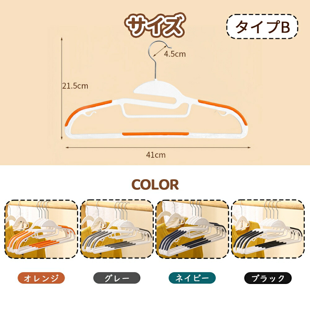 ハンガー 短い 多機能ハンガー 超薄型 グレー オレンジ ブルー ホワイト グレー-タイプB オレンジ-タイプB ネイビー-タイプB ブラック-タイプB 10本セット 20本セット 30本セット 50本セット