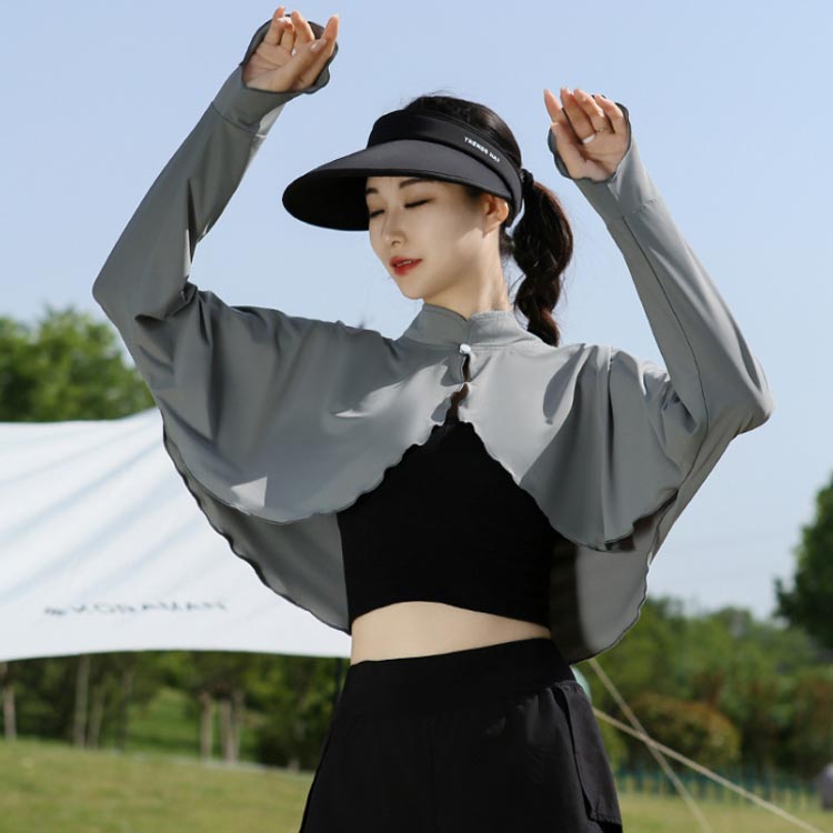 立ち襟 ラッシュガード ケープ 裾フリ トップス カーディガン ボレロ 新作 ホワイト ライトグレー グレー グリーン ダークグレー ブラック イエロー ピンク キャメル