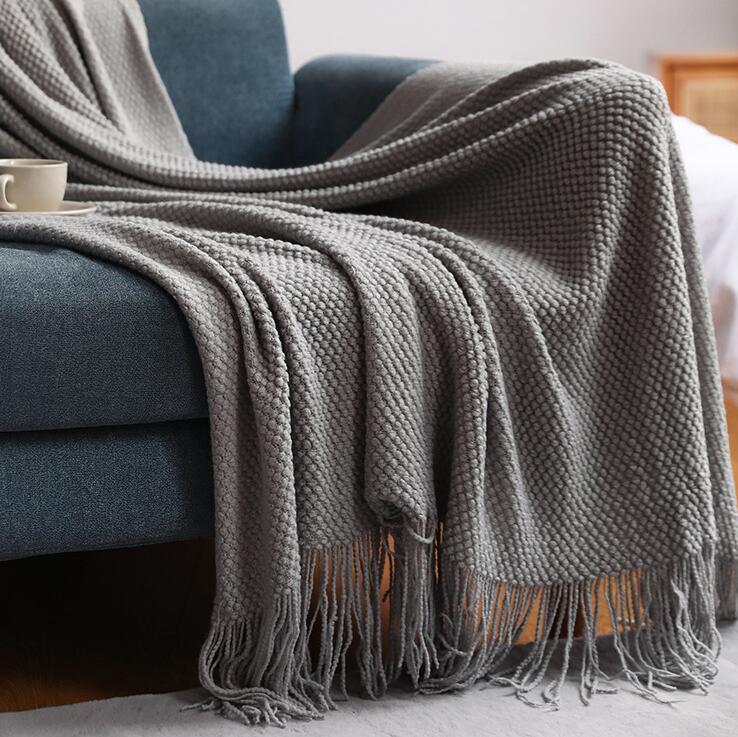 フリンジ付きブランケット 北欧 大判 寝具 毛布 ブランケット 豊富な品揃え ブルー ピンク グリーン ダークグレー ライトグレー イエロー ホワイト オレンジ 127*152+10CM 130*200+10CM