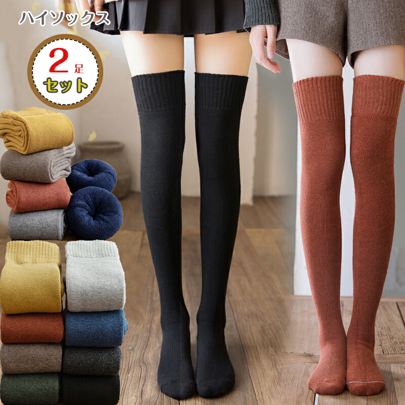 2足セット ハイソックス 靴下 平編み レディース 靴下 レッグウェア 靴下 豊富な品揃え ブラック ダークグレー コーヒー レッド イエロー ブラック ダークグレー コーヒー レッド イエロー