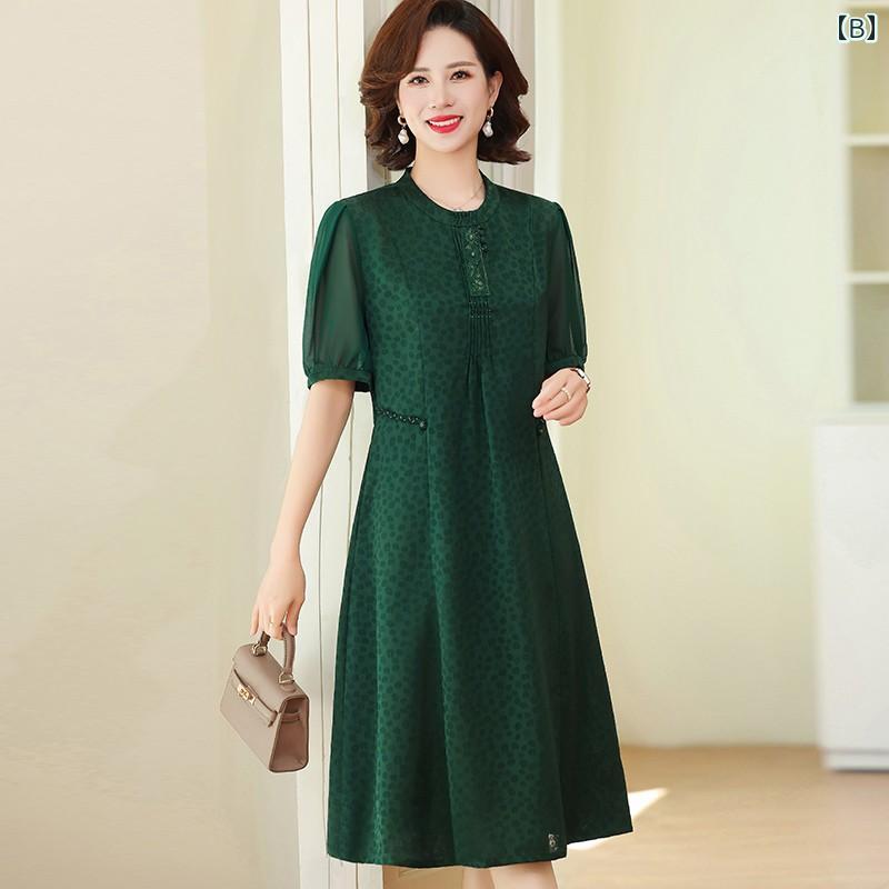 ワンピース きれいめ パーティー 婦人 レディースファッション 新登場! A:赤 B:緑 XL 2XL 3XL 4XL 5XL