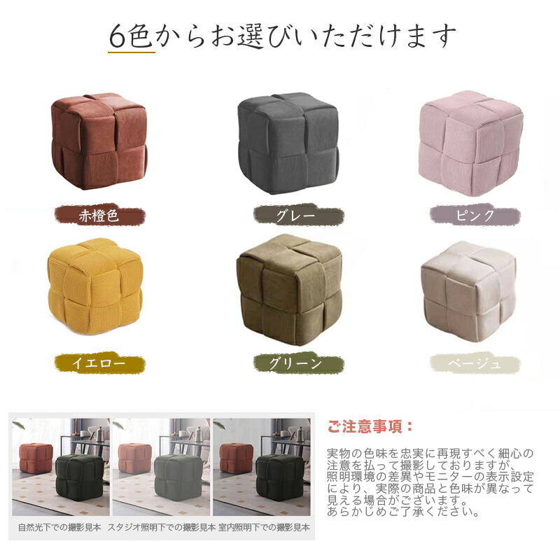 オットマン ルービックキューブスツール ベージュ グリーン イエロー ピンク グレー 赤橙色