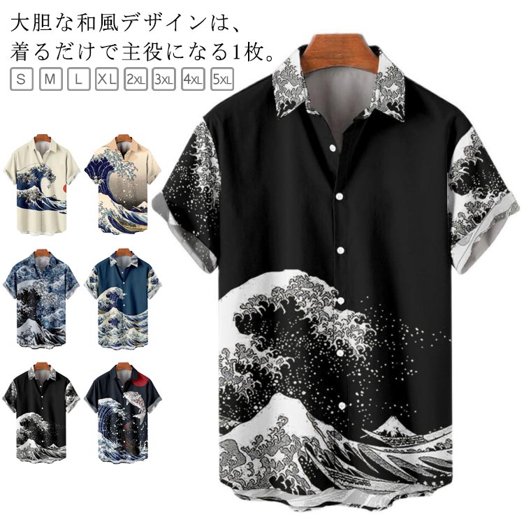 レトロ 波柄 和柄 薄手 ストリート トップス カジュアルシャツ 続々入荷中 1 2 3 4 5 6 S M L XL 2XL 3XL 4XL 5XL