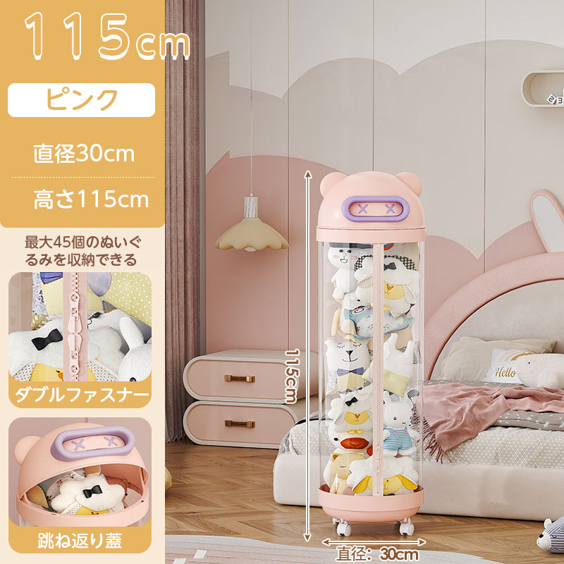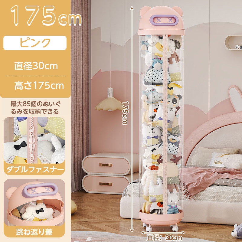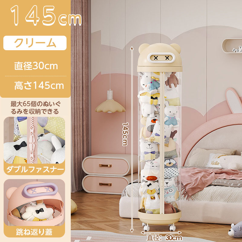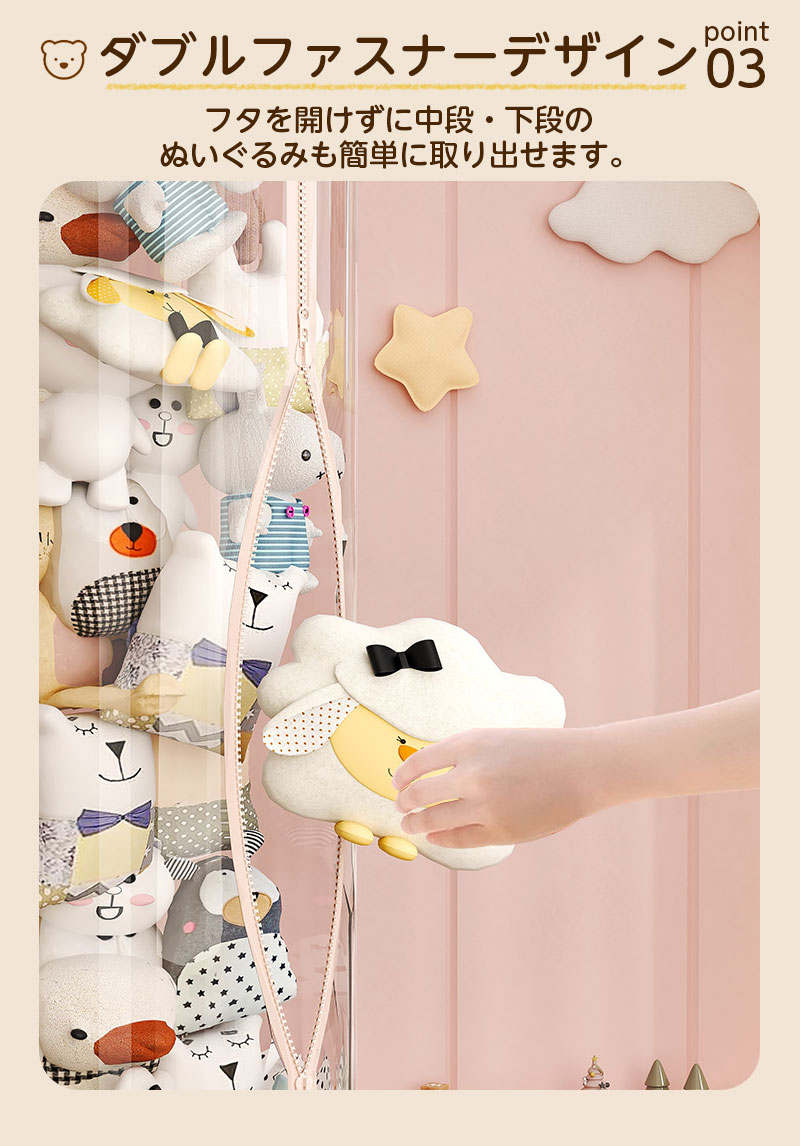 ぬいぐるみ 収納 ジッパータイプ 透明 クリーム ピンク 115cm 145cm 175cm