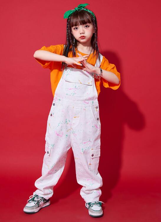 サロペット 子供 ダンス衣装 オーバー キッズ オーバーオール 続々登場 白パンツ 緑パンツ ローズT+白パンツ オレンジT+白パンツ 白T+緑パンツ 110 120 130 140 150 160 170 180