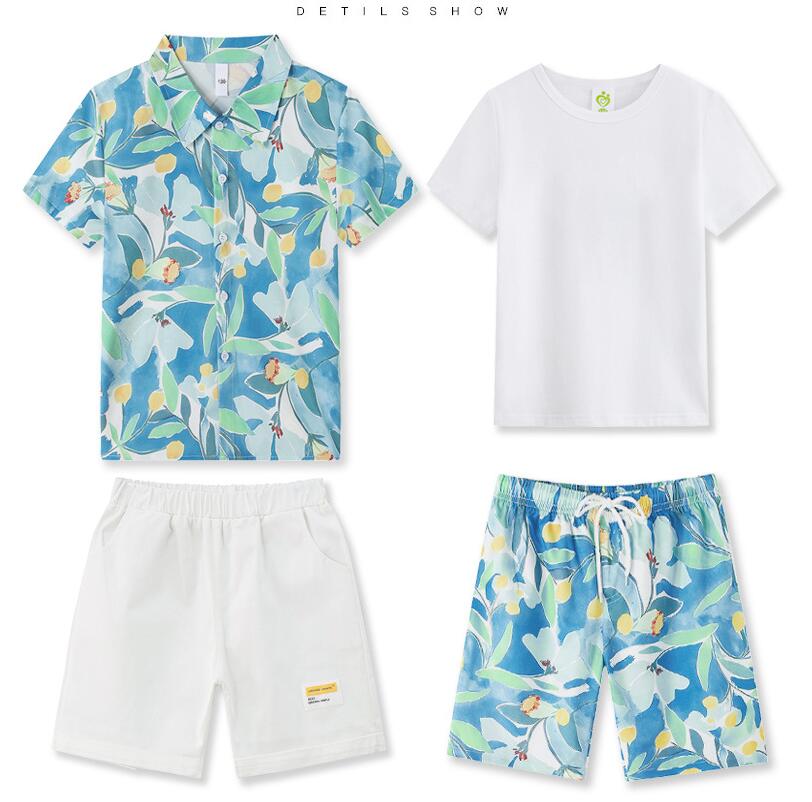 親子ペア 衣装 カップル 夏服 海旅行 ドレス シャツ+ブルー半ズボン シャツ+ベージュ半ズボン 白Tシャツ+ブルー半ズボン S M L XL XXL 3XL 4XL 90 100 110 120 130 140 150 160