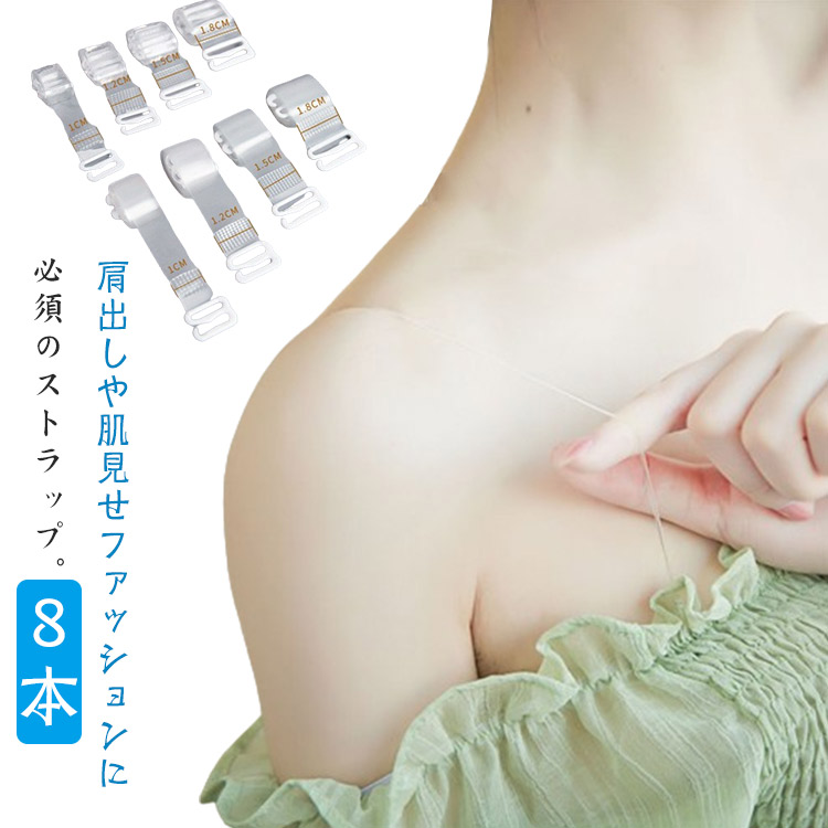 ブラジャー ストラップ 透明 オフショ レディース インナー 下着 下着用アクセサリー ストラップ 豊富な品揃え 透明(8本) 半透明(8本) 幅1cm 幅1.2cm 幅1.5cm 幅1.8cm