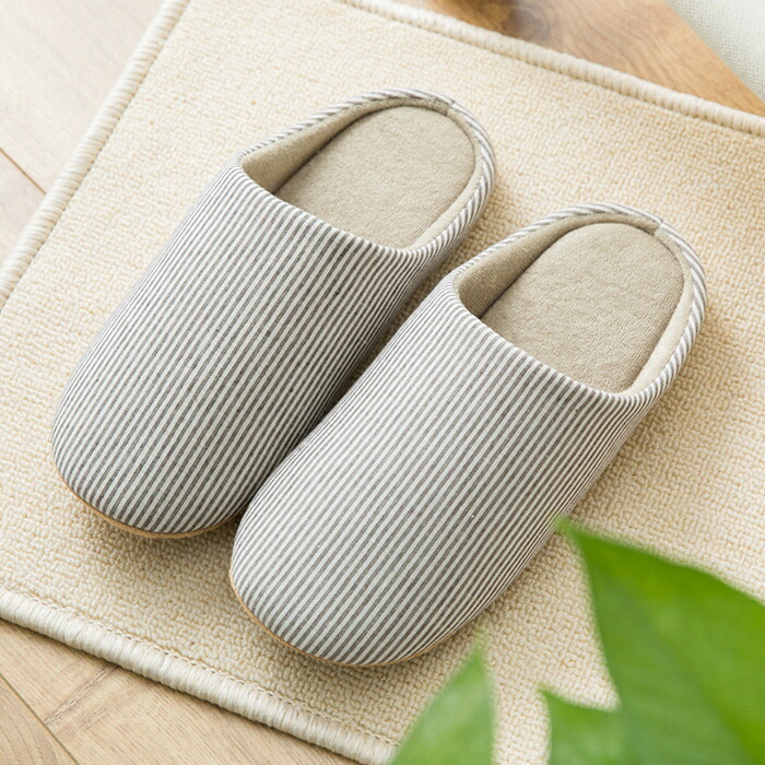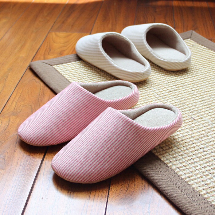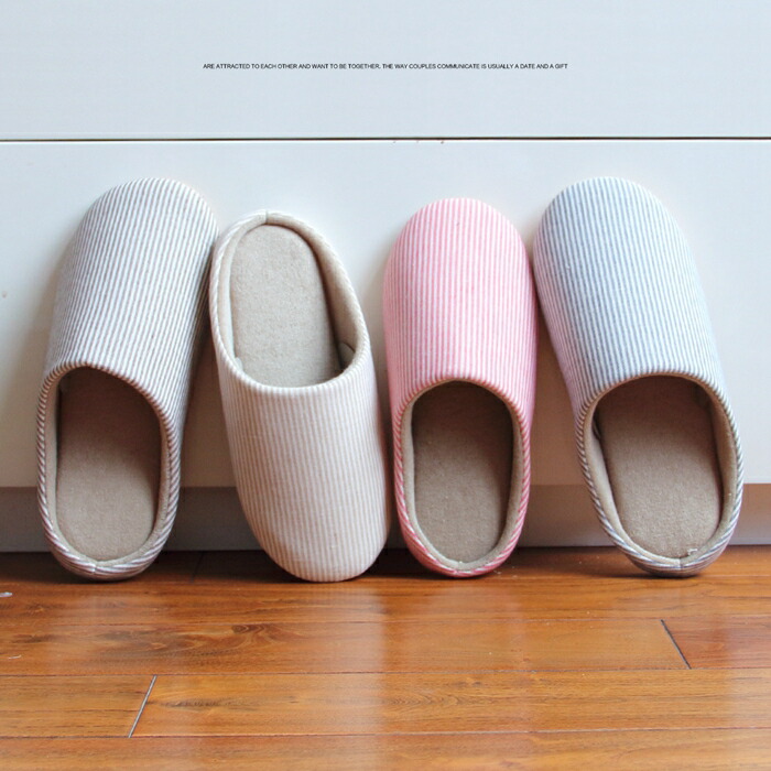 商品名:スリッパ ルームシューズ 縦ストライプ サンダル ラウンドトゥ 男女兼用 カップル スリッポン 軽量 耐摩耗 冷え対策 歩きやすい 滑りにくい 暖かい ローカット 美脚 無地 来客用 室内履き トイレ リビング 洗える 部屋 職場 オフィス 上履き 北欧 おしゃれ オールシーズン