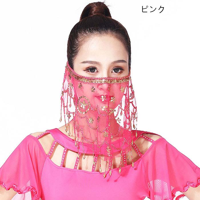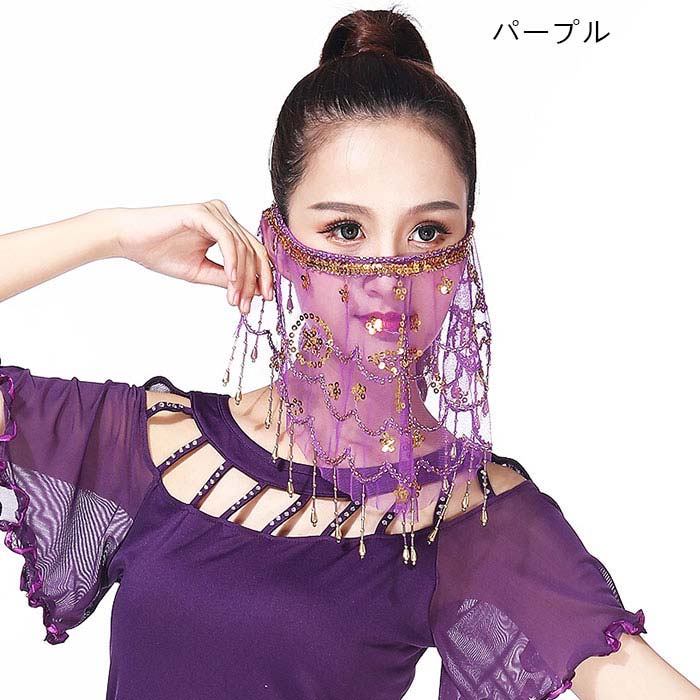 ベリーダンス フェイスベール マスク 体操 ダンス ベリーダンス その他 新登場! イエロー レッド ブラック パープル ブルー ピンク ライトブルー ホワイト