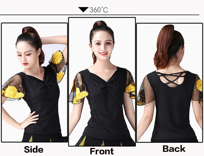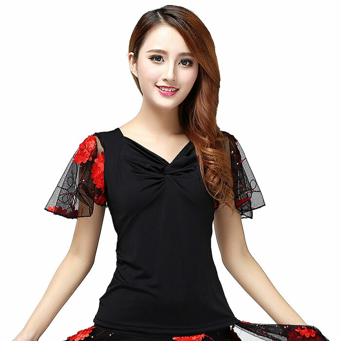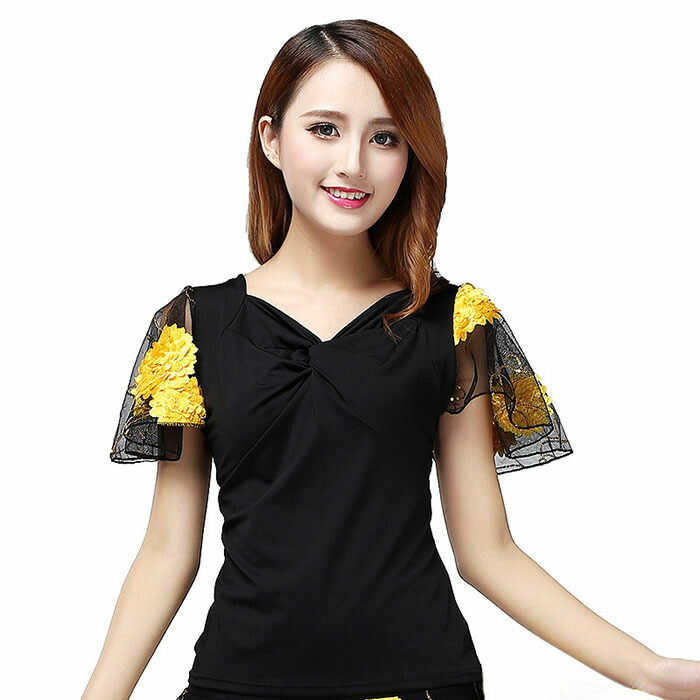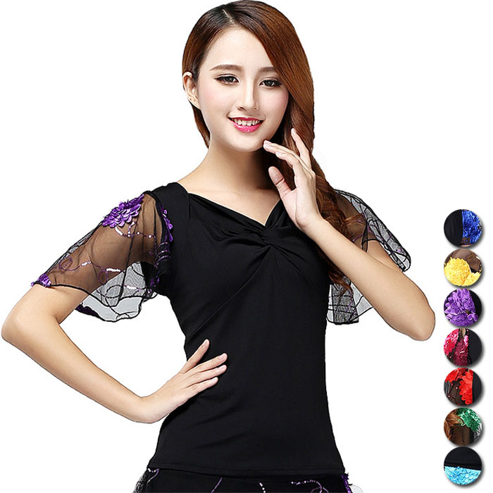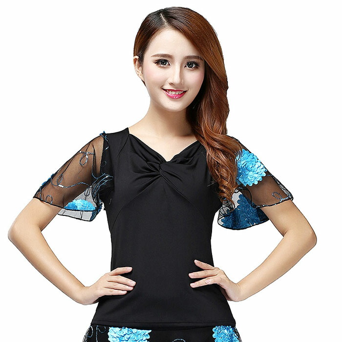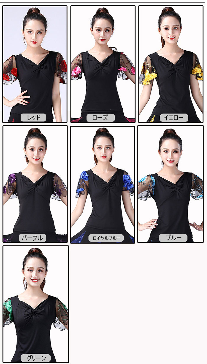 ダンストップス 社交ダンス 衣装 袖フ スポーツ アウトドア 通販 XL 2XL 3XL 4XL L イエロー レッド パープル グリーン ローズ ブルー ロイヤルブルー