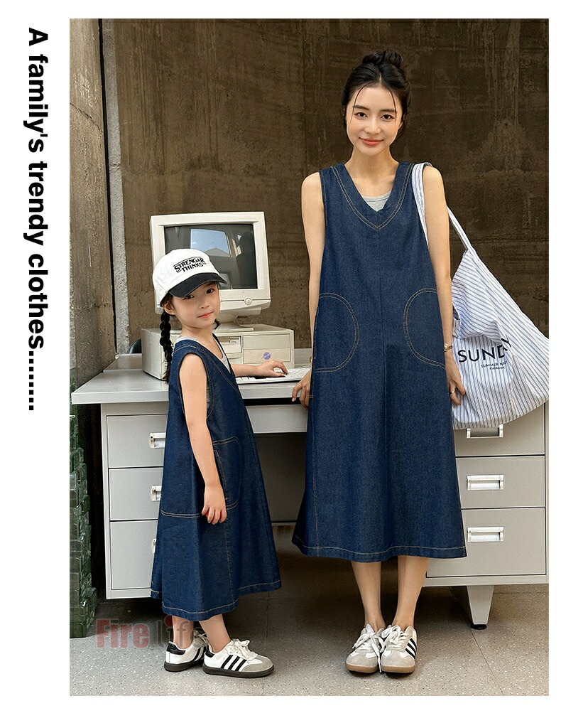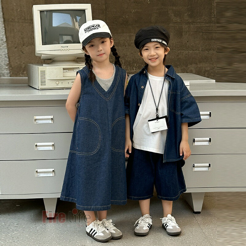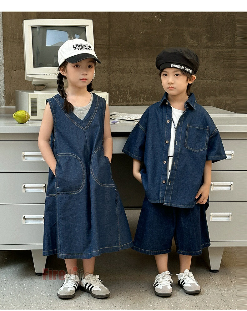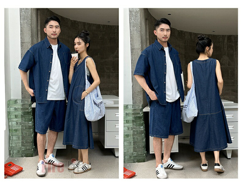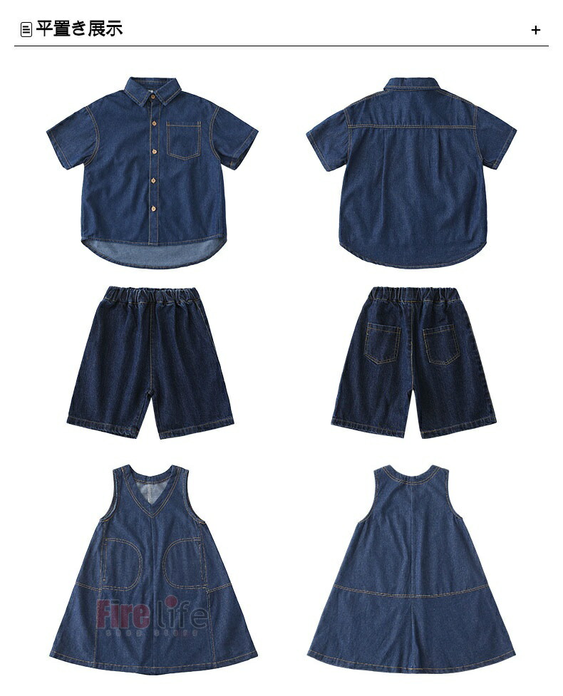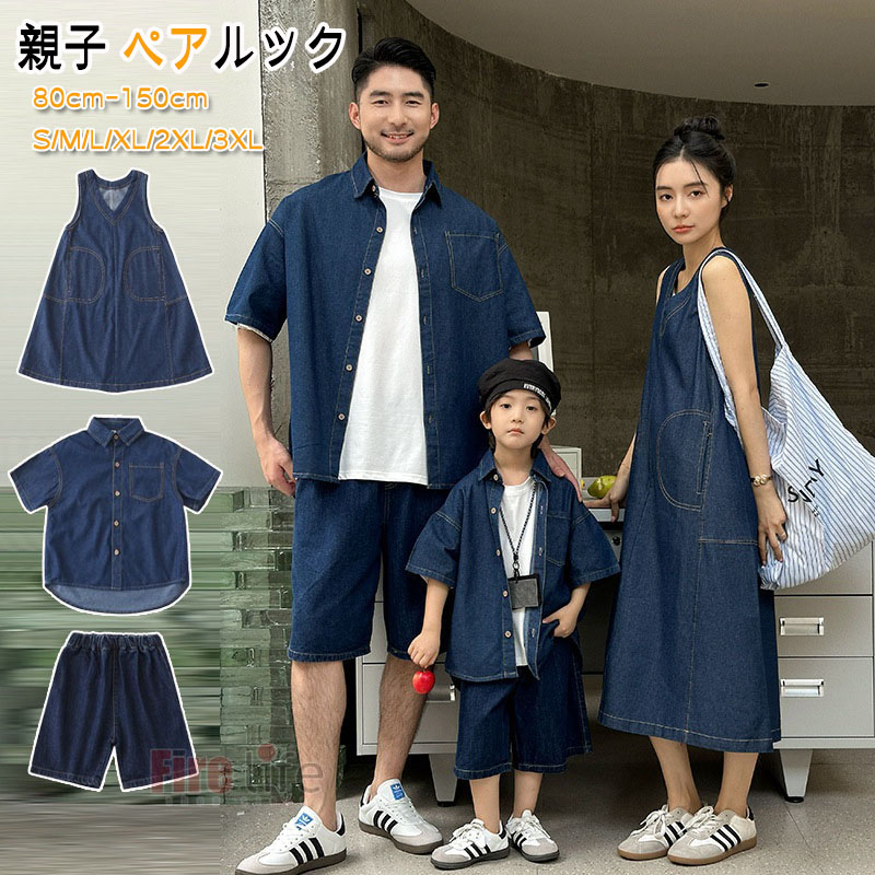 リンクコーデ 親子ペアルック 親子でお デニムシャツ ワンピース デニムシャツ+短パンツ 80 90 100 110 120 130 140 150 大人S 大人M 大人L 大人XL 大人2XL 大人3XL