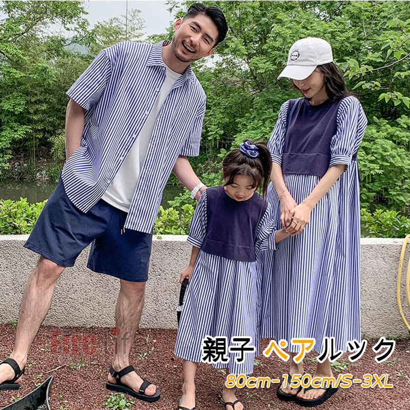 親子 ペアルック 親子でお揃い リンク 半袖シャツ ワンピース 半袖シャツ+短パンツ 80 90 100 110 120 130 140 大人S 大人M 大人L 大人XL 大人2XL 大人3XL
