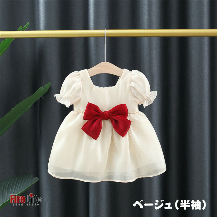 ベビー服 ワンピース リボン 女の子 キッズ ベビー マタニティ 早い者勝ち ベージュ(半袖) レッド(半袖) ベージュ(長袖) レッド(長袖) ベージュ2(長袖) レッド2(長袖) 73 80 90 100