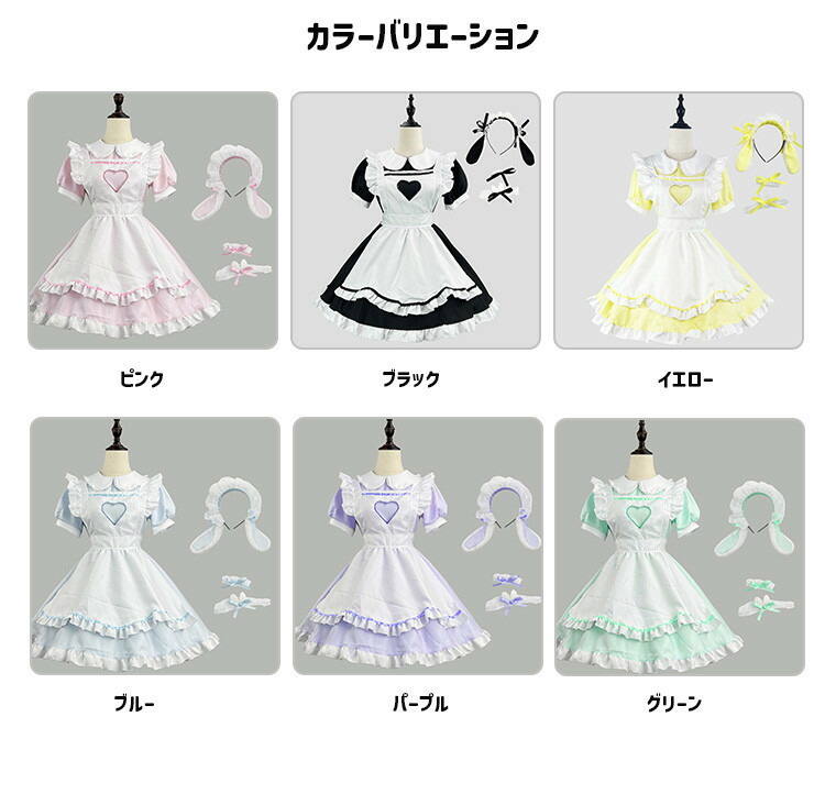 ハロウイン メイド服 女性 メイドコス コスプレ 変装 仮装 ワンピース 特集 ブラック ブルー ピンク パープル イエロー グリーン S M L XL 2XL 3XL 4XL 5XL