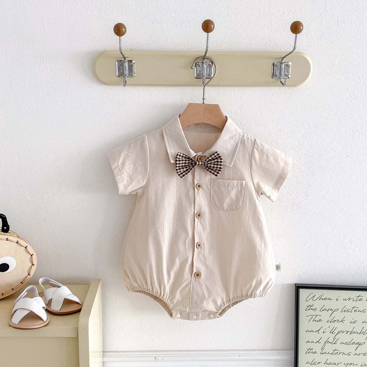 ベビー ロンパース フォーマル 男の子 蝶ネクタイ付き 襟付き 半袖 夏用 夏服 赤ちゃん デニム コットン 子供服 お食い初め 服 衣装 キッズ 綿 新生児 66 シャツ