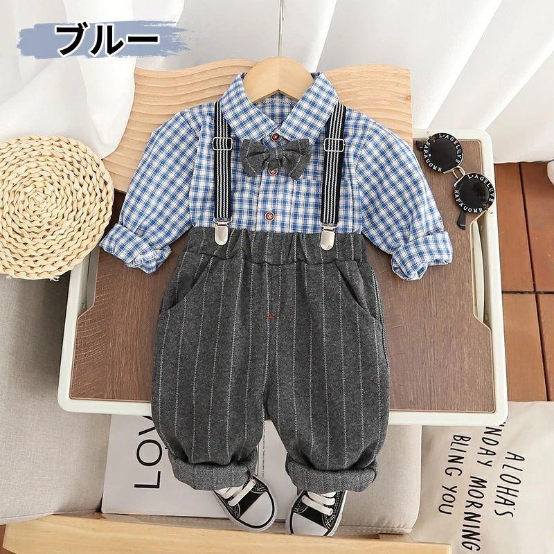 ビー スーツ 男の子 長袖シャツ チェ キッズ スーツ カジュアルセットアップ スーツ 豊富 ブルー グリーン 80cm 90cm 100cm 110cm