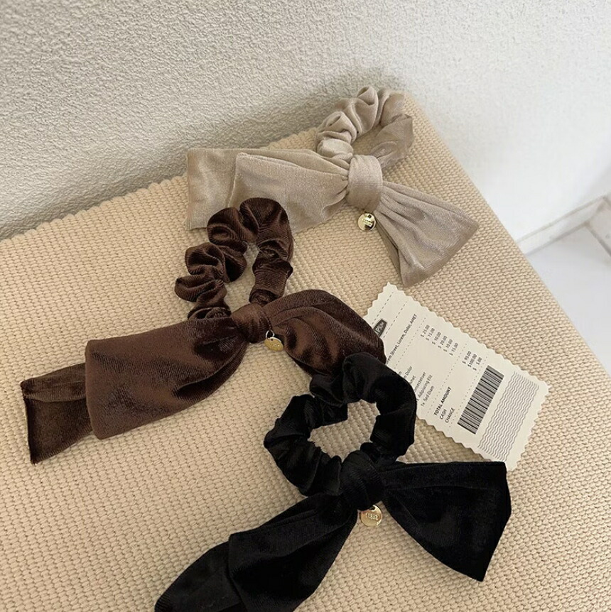 ベルベットリボンシュシュ ヘアゴム 秋 ジュエリー アクセサリー 豊富な品揃え ブラック ブラウン アプリコット