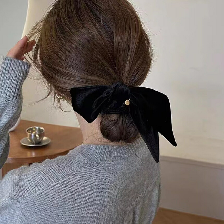 ベルベットリボンシュシュ ヘアゴム 秋冬 おしゃれ シュシュ ブラック ブラウン レディースヘアアクセサリー 大人可愛い