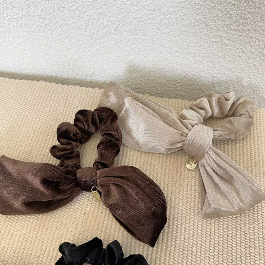ベルベットリボンシュシュ ヘアゴム 秋冬 おしゃれ シュシュ ブラック レディースヘアアクセサリー 大人可愛い ブラウン