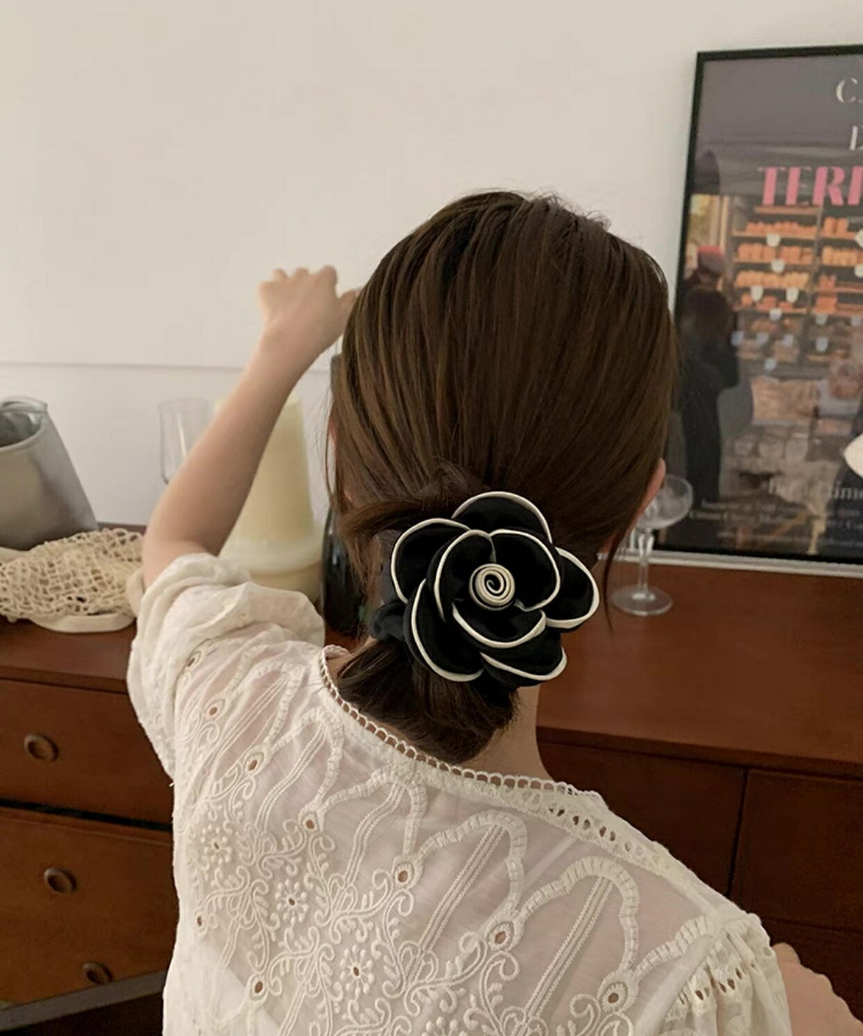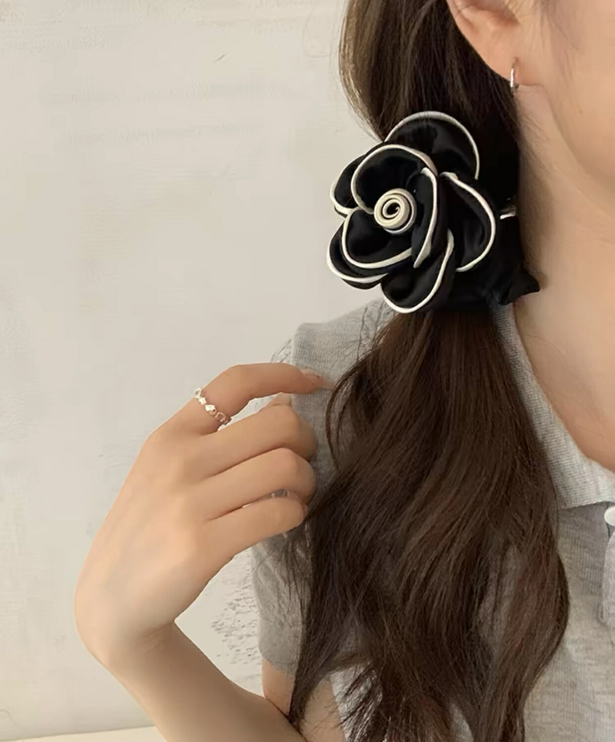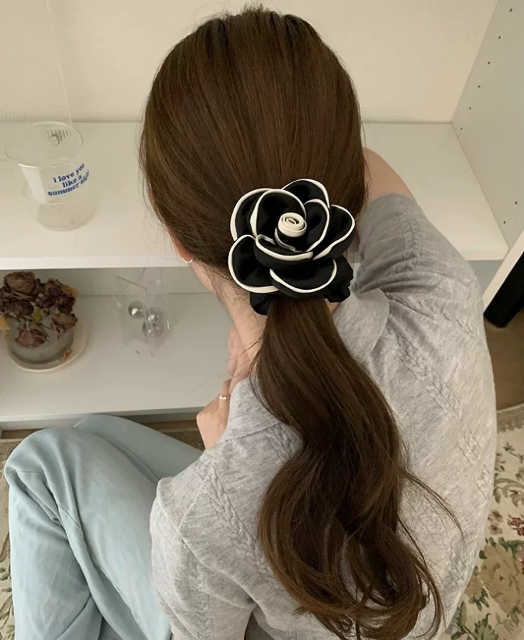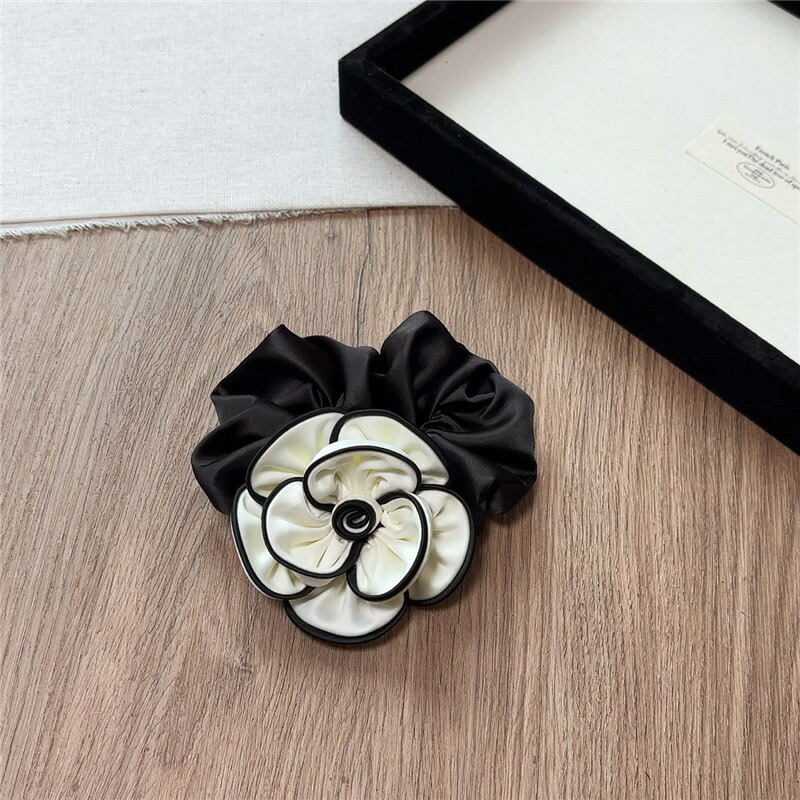 フラワーシュシュ カメリア サテンシュ レディースジュエリー アクセサリー ヘアアクセサリー シュシュ 豊富 ホワイト ブラック
