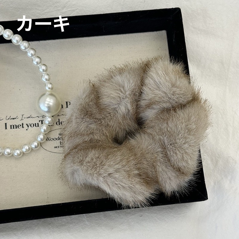 ファーヘアゴム シュシュ ふわふわ 秋 レディースジュエリー アクセサリー ヘアアクセサリー シュシュ 早い者勝ち グレー カーキ ダークブラウン ブラック ピンク ベージュ