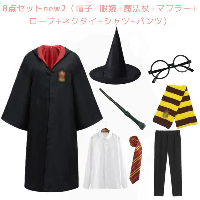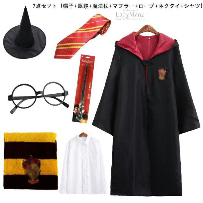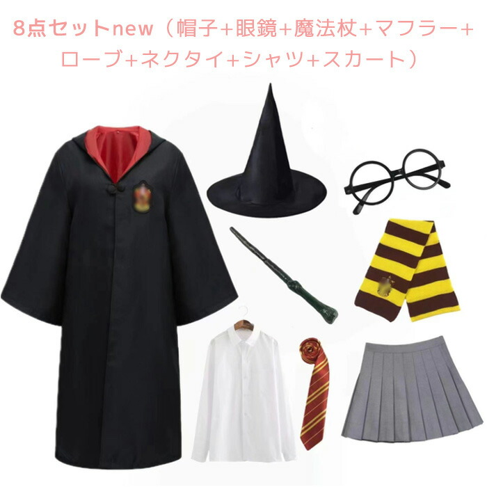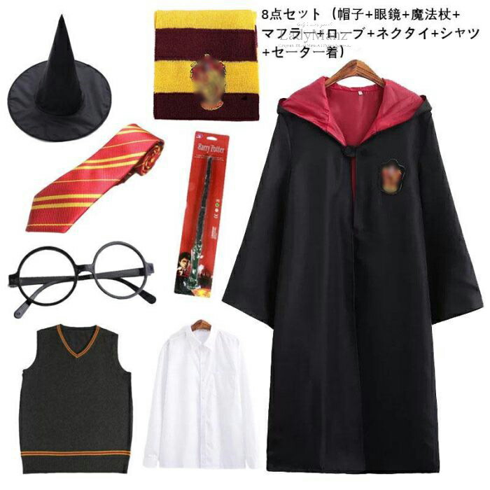 10%off中 ハリーポッター マント コスプレ 1~8点セット コスプレ衣装 魔法師 ハロウィン ローブ コスチューム 眼鏡 ネクタイ Tシャツー スカート 大人 子供 魔法使い 魔法の杖