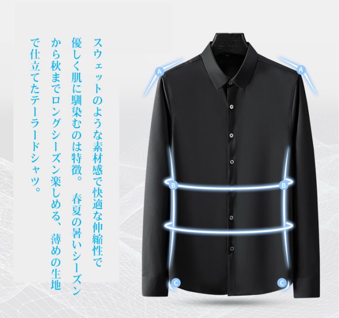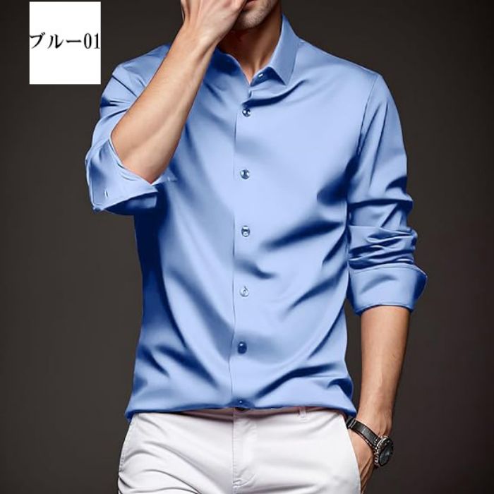 メンズ耐シワ性極薄アイスシルクワイシャ トップス ワイシャツ 新登場! ブルー01 ブルー02 ブラック ネイビー ダークグレー ライトグレー ホワイト レッド グリーン 38/S 39/M 40/L 41/XL 42/2XL 43/3XL 44/4XL 45/5XL 46/6XL