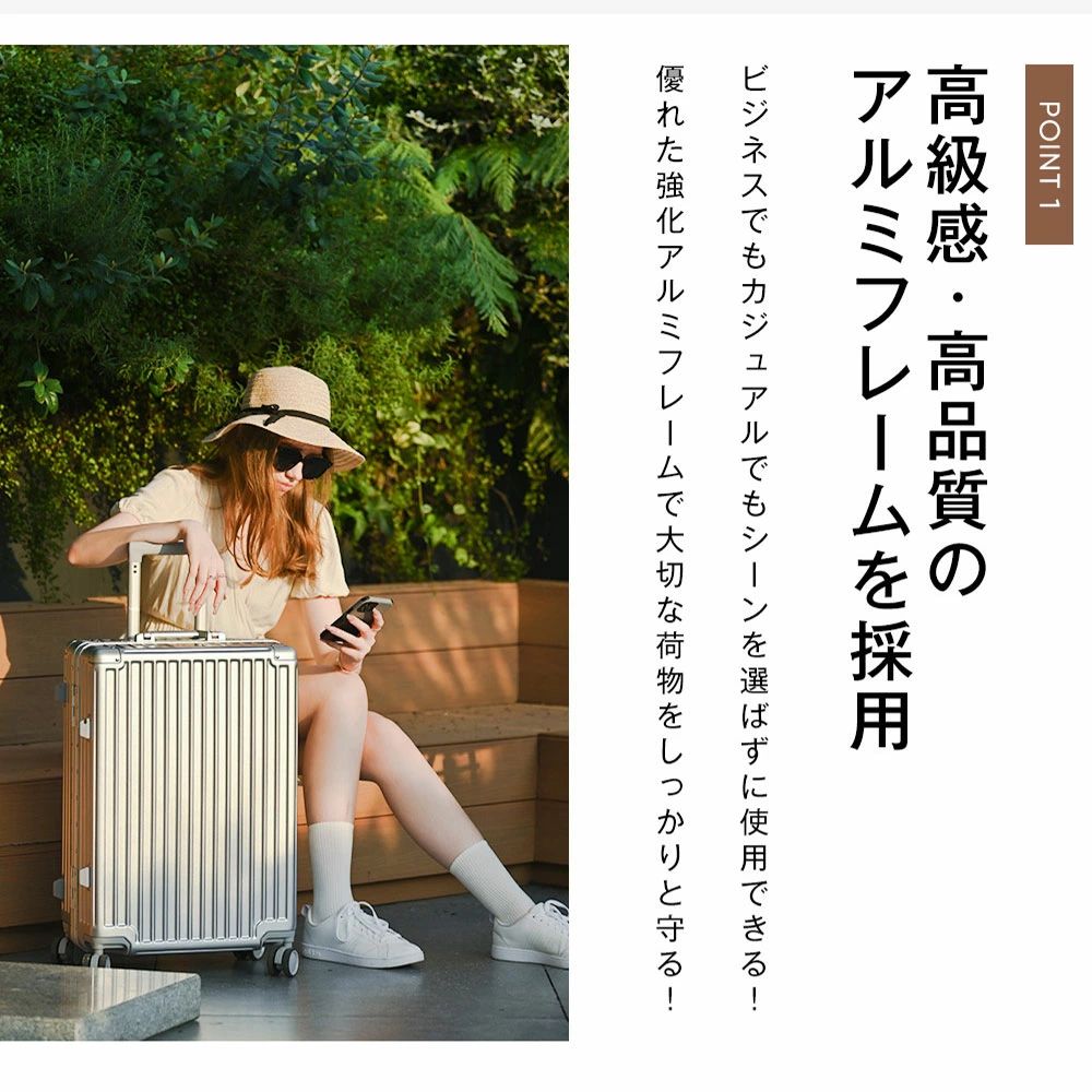 POINT 1.【高級感 高品質のアルミフレームを採用】ビジネスでもカジュアルでもシーンを選ばずに使用できる!優れた強化アルミフレームで大切な荷物をしっかりと守る!