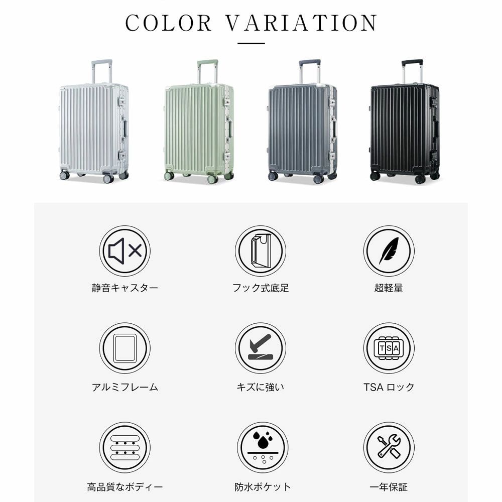 スーツケース キャリーケース TSAロック搭載 キャリーバッグ フレームタイプ フック式底足 防水ポケット 軽量 おしゃれ ダイヤル式 静音 小型 中型 大型 超軽量 軽い ダブルキ 大容量