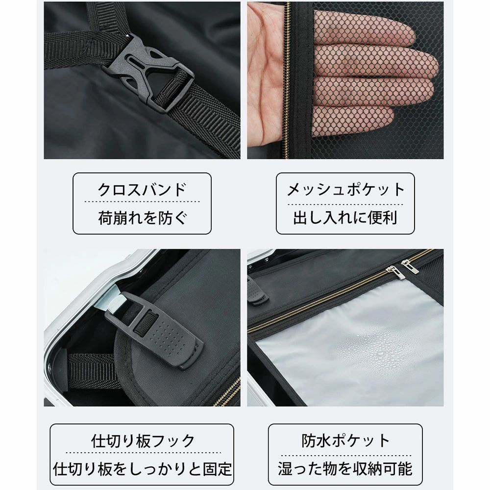 POINT 3.【たっぷり入る使いやすい内装を防水ポケット】防水ポケット付き仕切り板、お荷物を水から守ります。