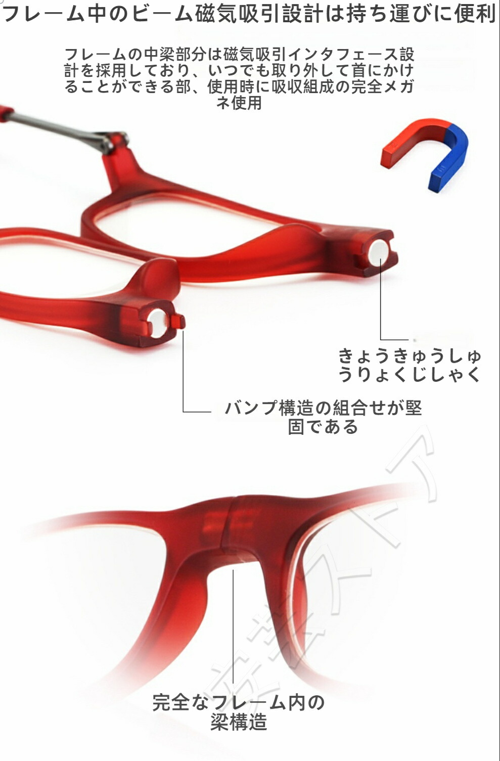 紛失防止老眼鏡 強力マグ スマート 首 眼鏡 サングラス 老眼鏡 人気 ブラック ブラウン レッド +1.00 +1.50 +2.00 +2.50 +3.00 +3.50 +4.00
