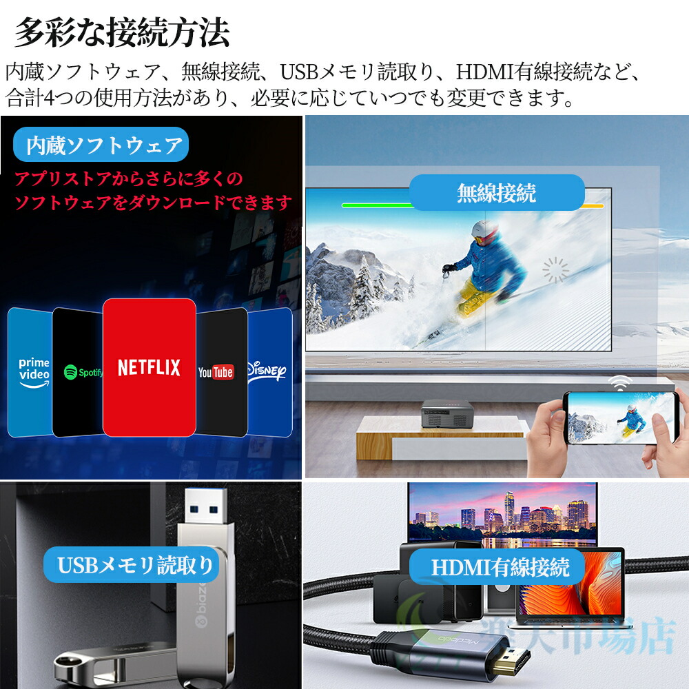 プロジェクター 小型 家庭用 天井投影 スマホと繋げる 1080P&4K対応 高画質 26000LM 自動フォーカス 自動台形補正 高輝度 YouTube android搭載 スマホ Netflix