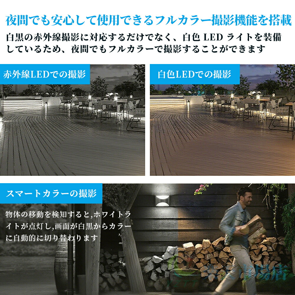 全てのカメラには合計 4 つの赤外線ライトと LED ライトが内蔵され、白黒撮影とカラー撮影の両モードに対応しています。他メーカーのバッテリー式防犯カメラに比べ、ライトの数は 3 倍となり、低照度環境下でもより鮮明な映像を撮影でき、最遠 15 メートル先の光景までクリアに捉えることができます。
